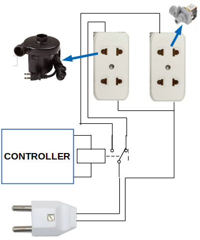 Here’s how it works: When the controller switches the left power socket, the pump should turn on